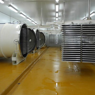 lyophilizers, который состоят из система еды пре-замерзая, замерзающ и сушащ бак, система отопления, система вакуума, refrigerating система, материальные транспортируя система и система управления, etc.